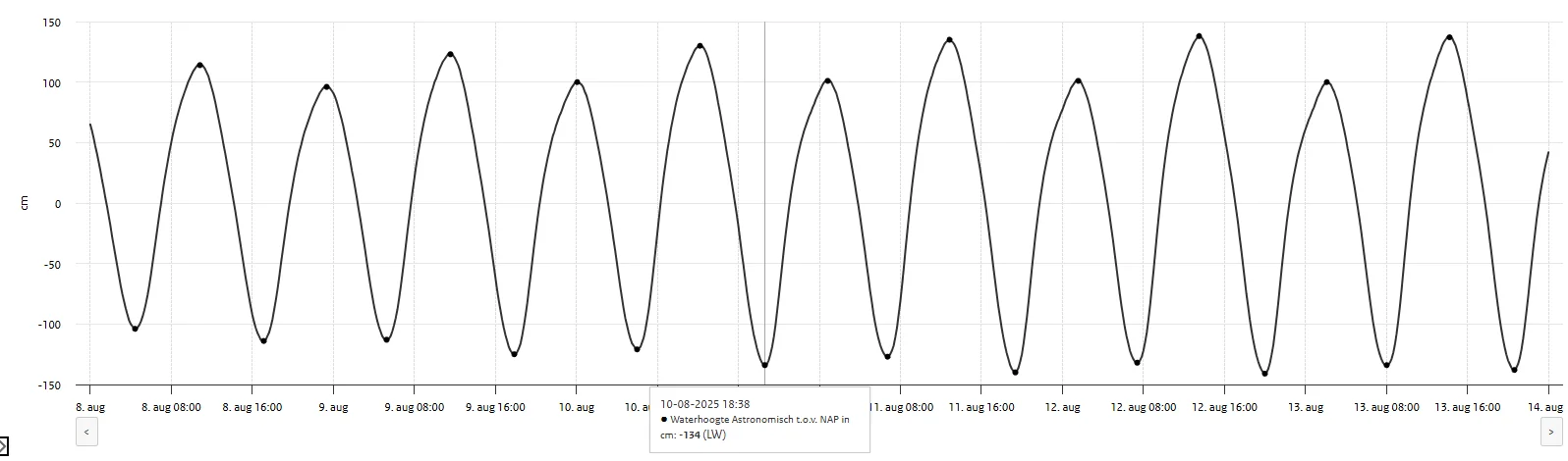 Het is ieder jaar weer een hele puzzel om een week te vinden waarin wij ons programma kunnen laten aansluiten op de getijdentabel. Deze tabel is een astronomische tabel; het geeft op basis van de stand van de zon en de maan weer hoe laat het hoog of laag water is en wat de te verwachte waterstand is. De werkelijke waterstand is afhankelijk van verschillende factoren, zoals windrichting en -kracht. Om die reden luisteren de schippers iedere dag naar de berichtgeving van de zeeverkeerscentrale over de actuele waterstanden. Die kunnen soms wel tot 50 cm afwijken van de verwachting!